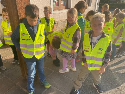Polizei übte mit den Kindern der ersten Klasse das richtige und